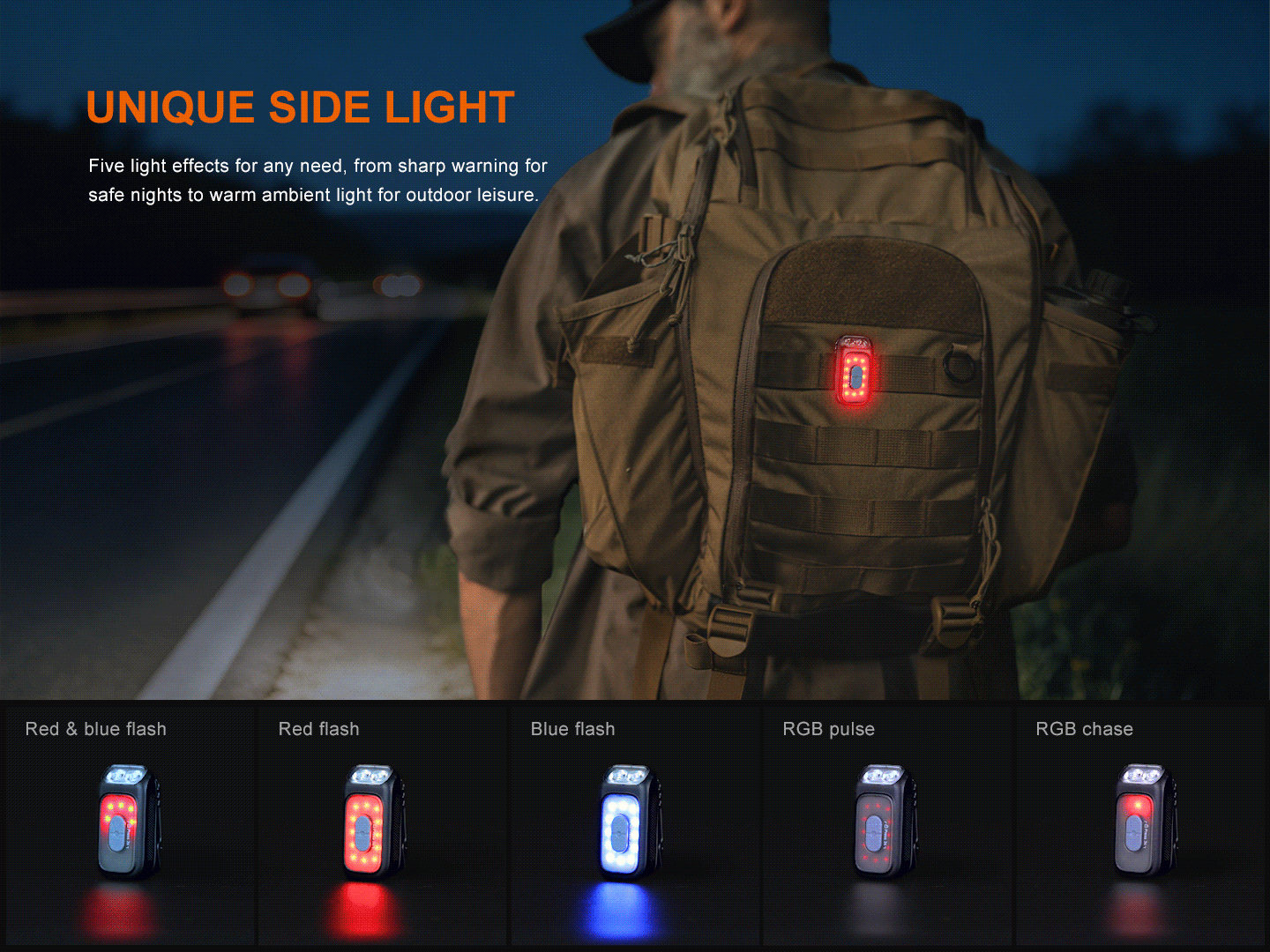 The Fenix E04R is an ultra-compact, highly versatile Everyday Carry (EDC) flashlight designed to go wherever you do. Pumping out a maximum of 300 lumens with a beam distance of 46 meters, this multi-LED light features a red and white dual main light, plus a highly visible red-and-blue side warning light for enhanced safety. Powered by a built-in 400mAh battery with convenient USB Type-C charging, it delivers up to 40 hours of runtime.