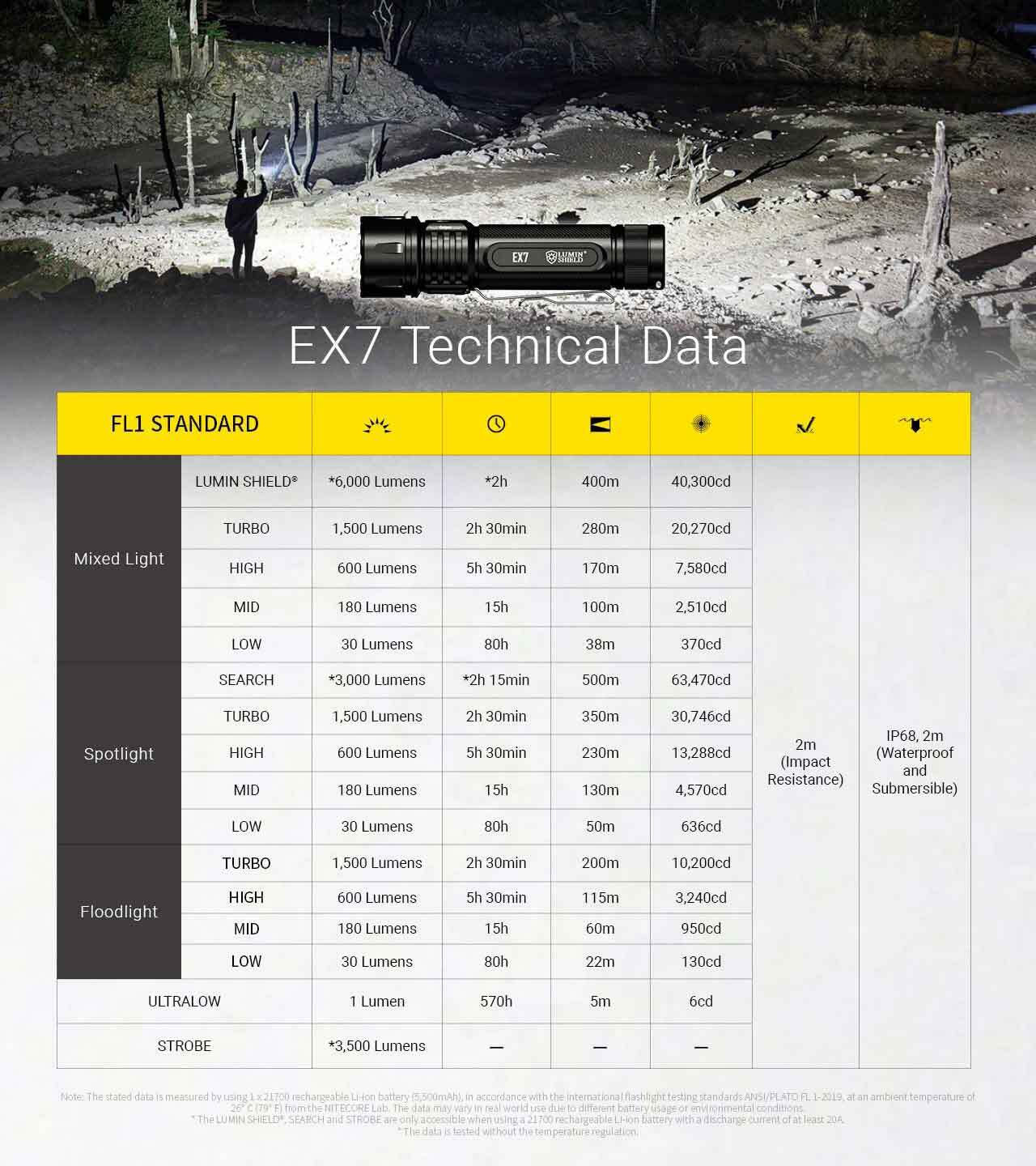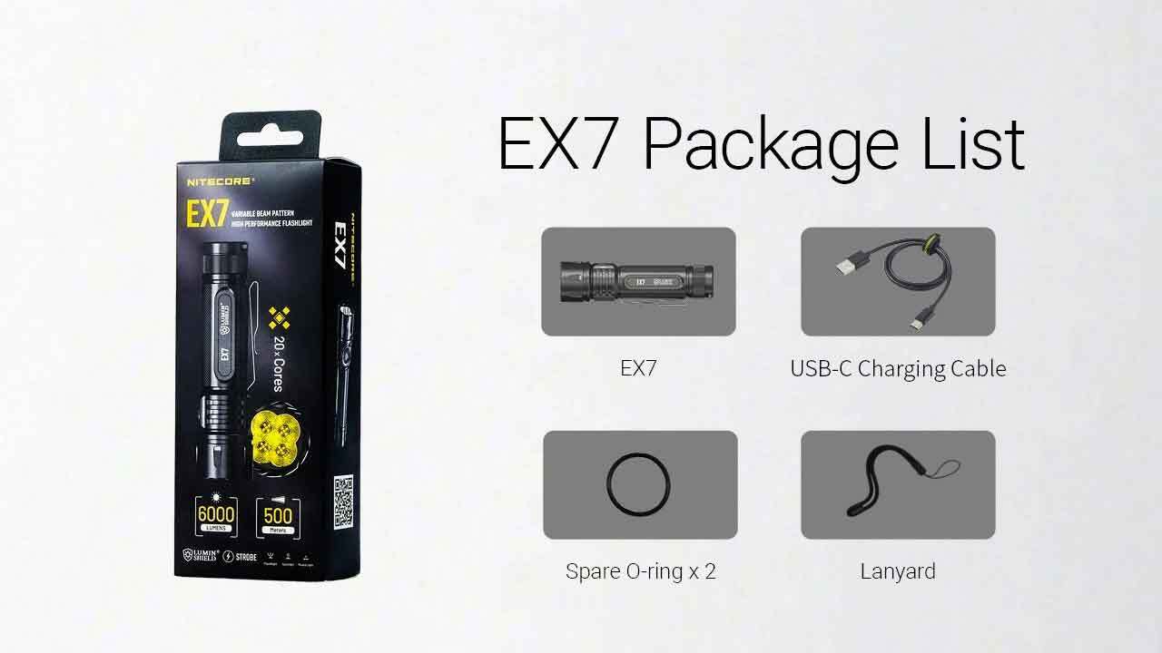The Nitecore EX7 is a high-performance rechargeable torch built for law enforcement, emergency responders, and outdoor professionals. Delivering an intense 6000 lumens and a 500-metre beam throw, it offers unmatched power, durability, and versatility. With multiple beam patterns, advanced tactical modes, and USB-C fast charging, the EX7 is ready for any mission across toughest conditions.