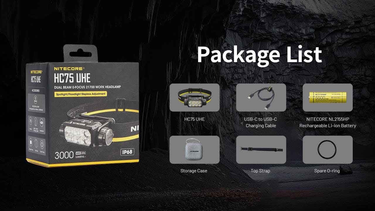 The Nitecore HC75 UHE is a 3000 lumen high-performance, dual-beam LED headlamp built for serious outdoor professionals and adventurers. With a powerful 3000 lumen output from 8 core UHE LEDs, it delivers both spotlight and floodlight in one rugged, compact unit. Featuring USB-C fast charging, red light modes, and a 5500mAh rechargeable battery, it’s ready for hiking, camping, search and rescue, and tactical use. Rated IP68 waterproof and 2m impact resistant, the HC75 UHE thrives in extreme conditions.