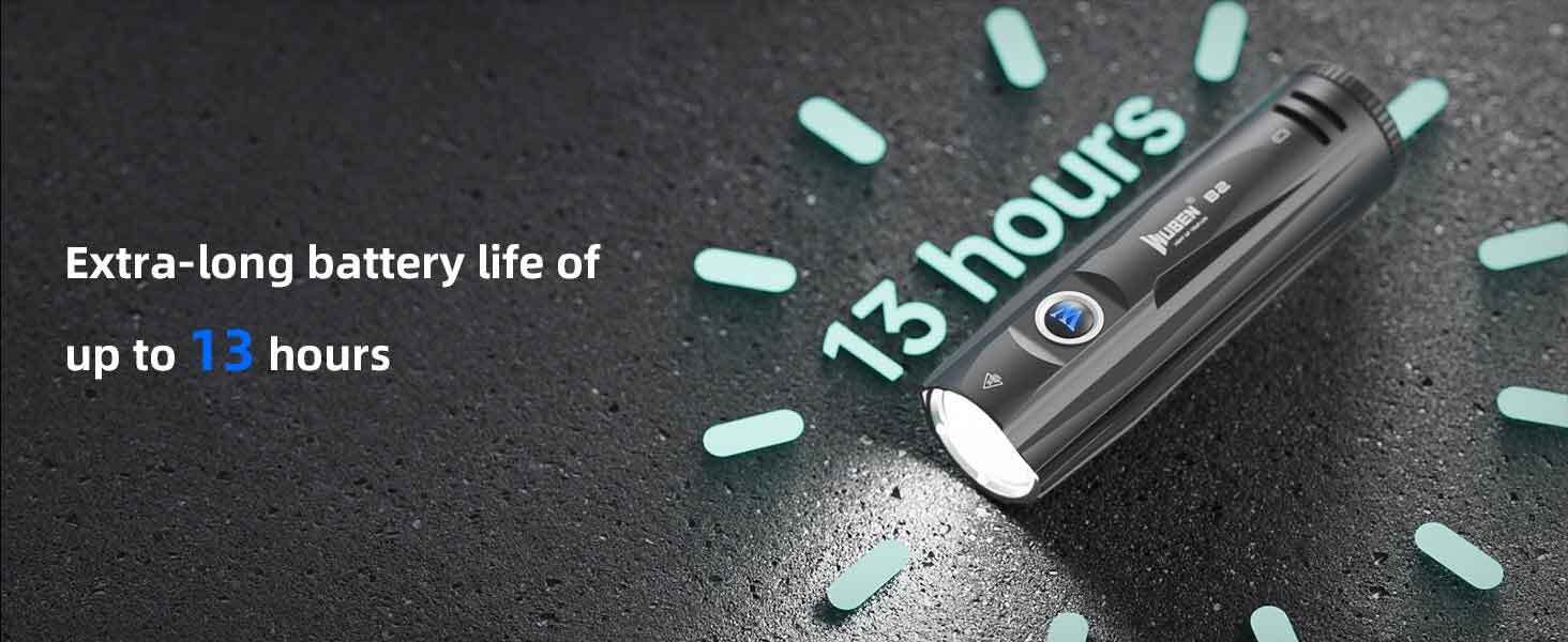 TURBO: 1300→600 lumens - 1 min + 2 hrs